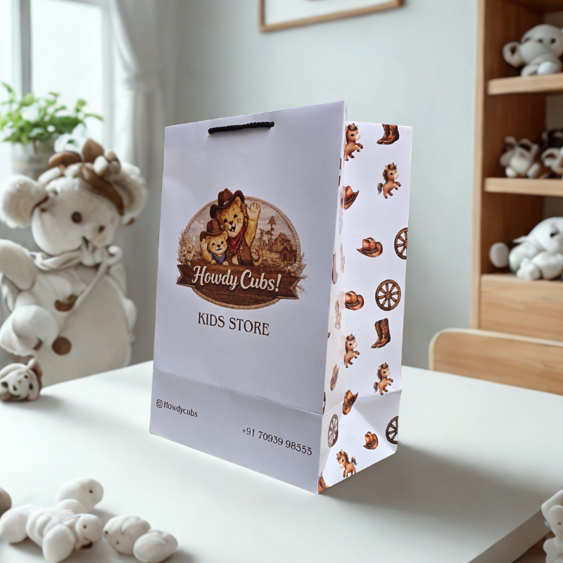 Crafted with high-quality paper and durable handles, these bags are perfect for carrying toys, clothes, and return gifts. The attractive cartoon-themed design adds charm and creates a delightful unboxing experience for kids and parents alike.