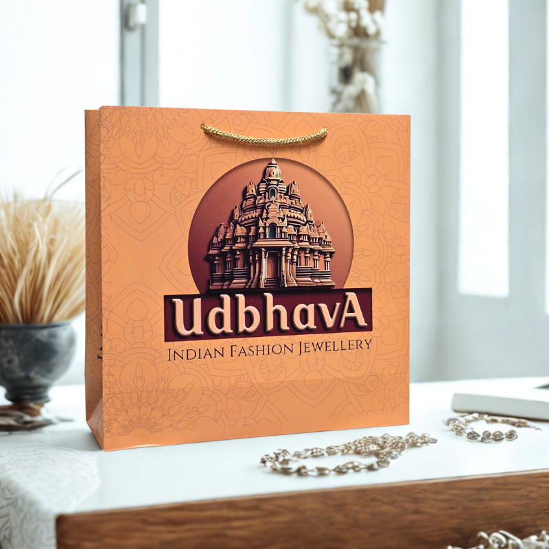 at arrow paper products, we designed with elegance and strength for premium jewellery packaging. Crafted from 200 GSMCyber XL Paper with lamination and rope handles, these bags perfectly reflect traditional Indian artistry and luxury. Ideal for jewellery boutiques, exhibitions, and festive gifting — combining style, strength, and sustainability.