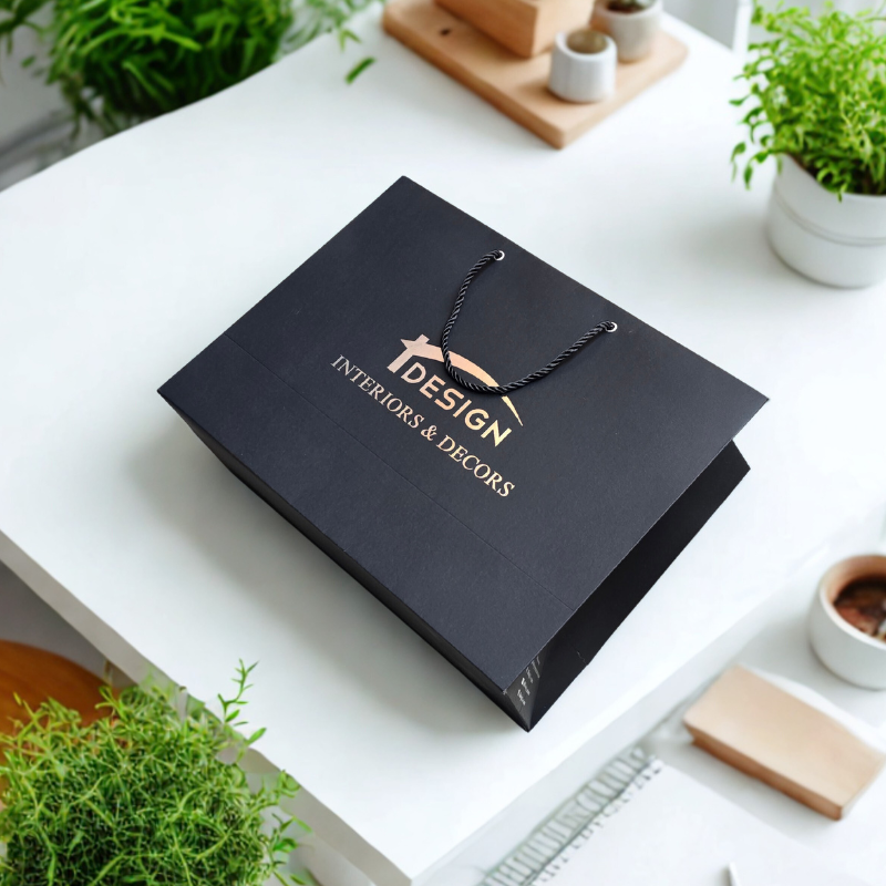 Upgrade your brand presentation with our Premium Black Luxury Paper Bags, designed exclusively for interior designers, décor studios, and premium retail brands. This elegant matte–finish black bag with sleek gold printing adds a touch of class to every purchase. Perfect for gifting, brand promotions, corporate events, and showroom packaging.
