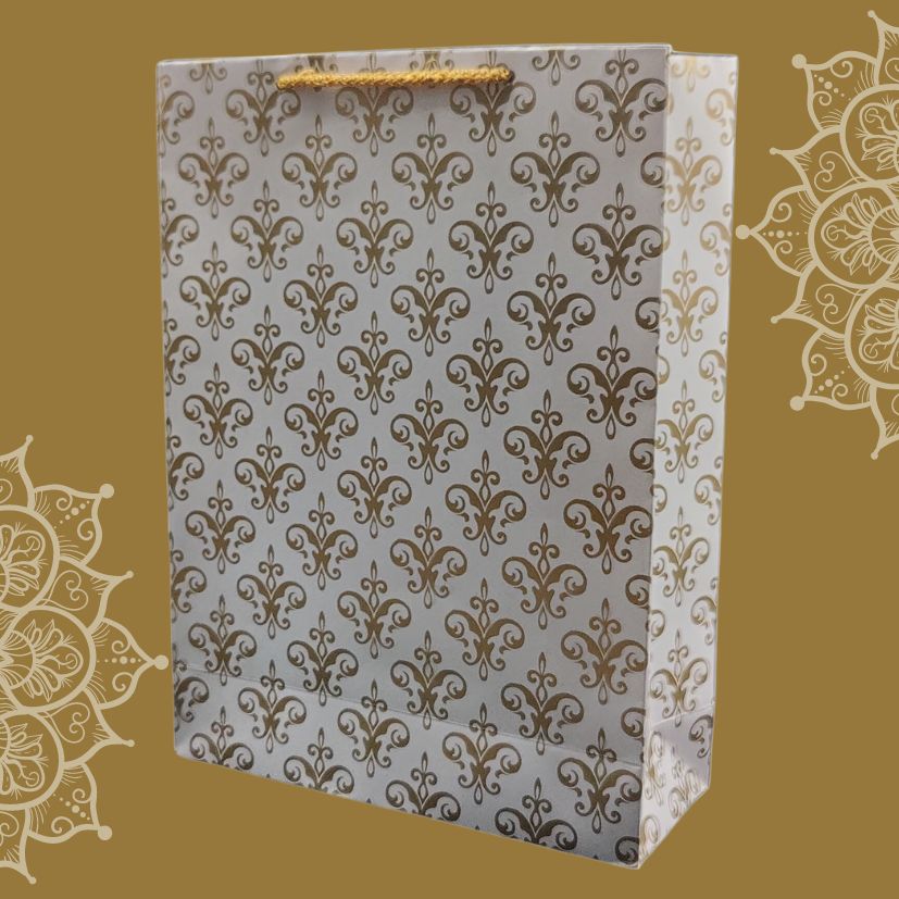 Gold color crown theme Bags. 11x8x3 inches good quality board and top class printing.