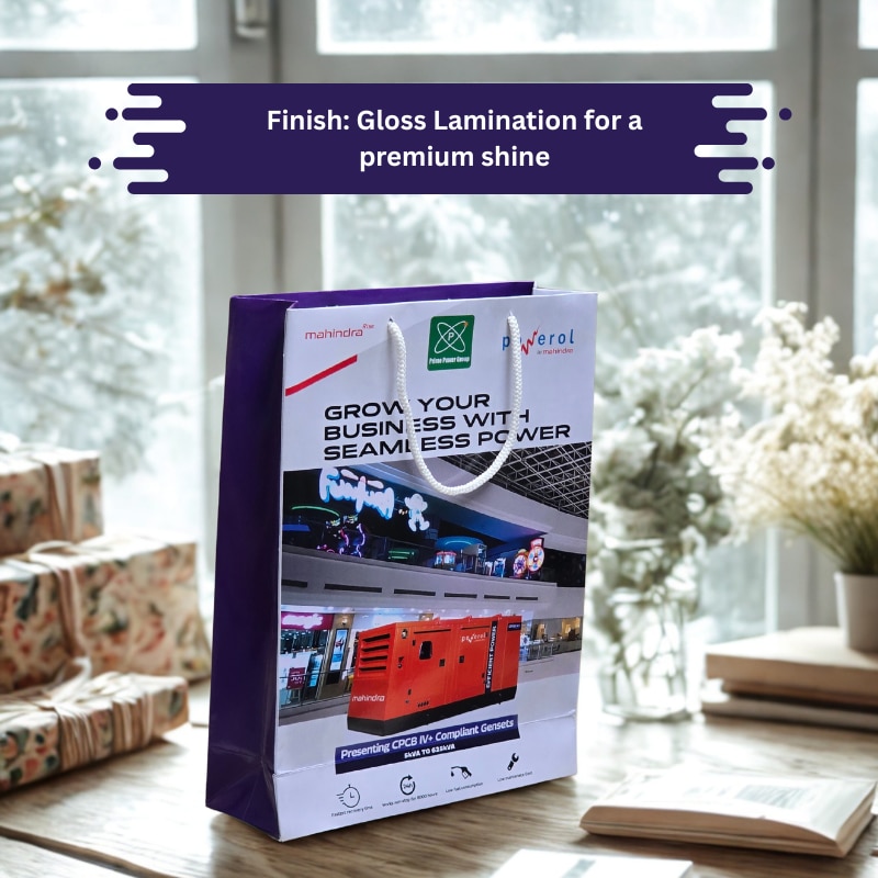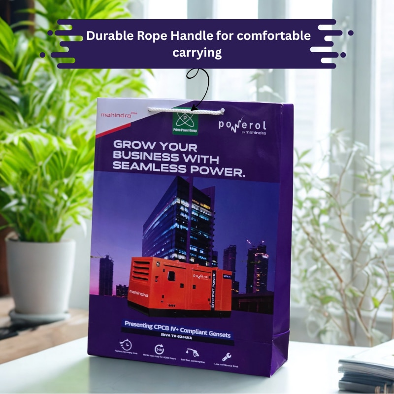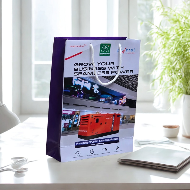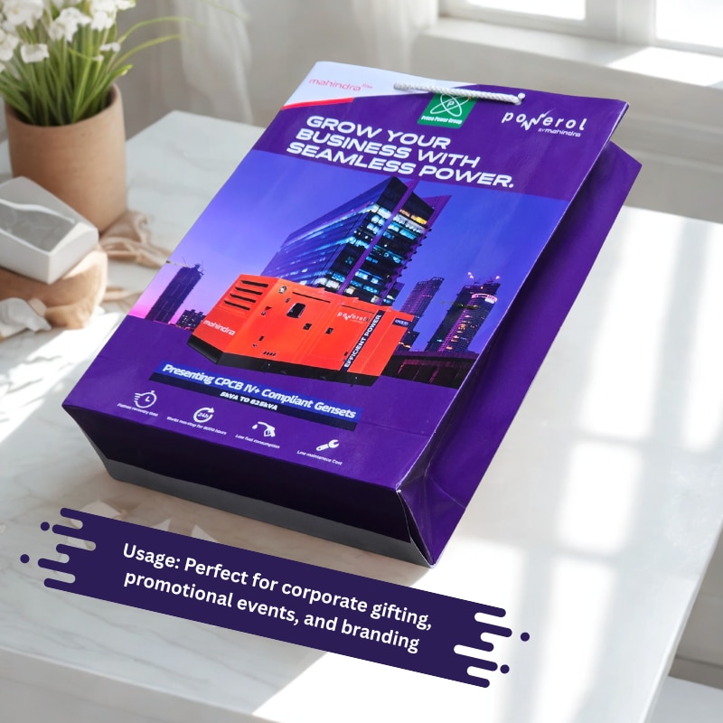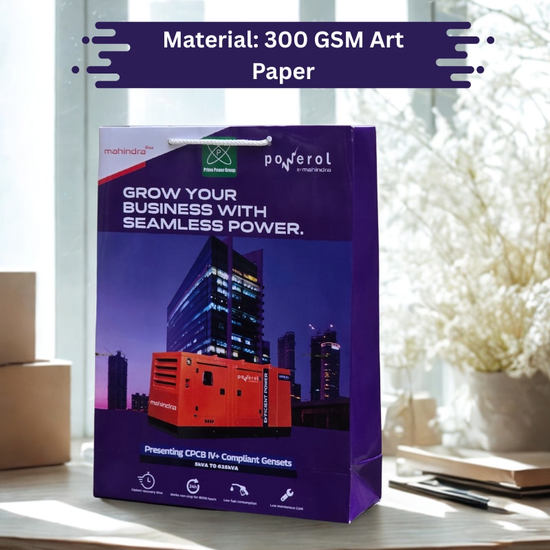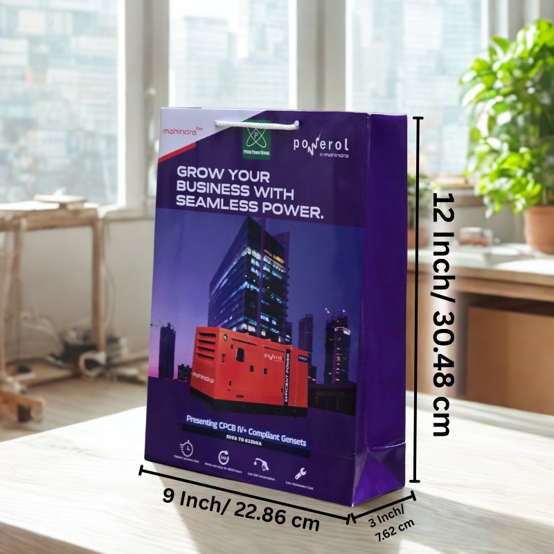 Enhance your brand presentation with custom printed paper bags from Arrow Paper Bags. This high-quality corporate gifting bag is made using 300 GSM premium art paper with gloss lamination, offering a professional and durable finish perfect for exhibitions, conferences, and product promotions. We manufacture corporate brand paper bags with vibrant multicolor printing, ensuring your company logo stands out. These bags are ideal for events, seminars, electronics, industrial products, and brand launches. Note: Price varies based on quantity and bag size. (Custom pricing available for bulk orders.)