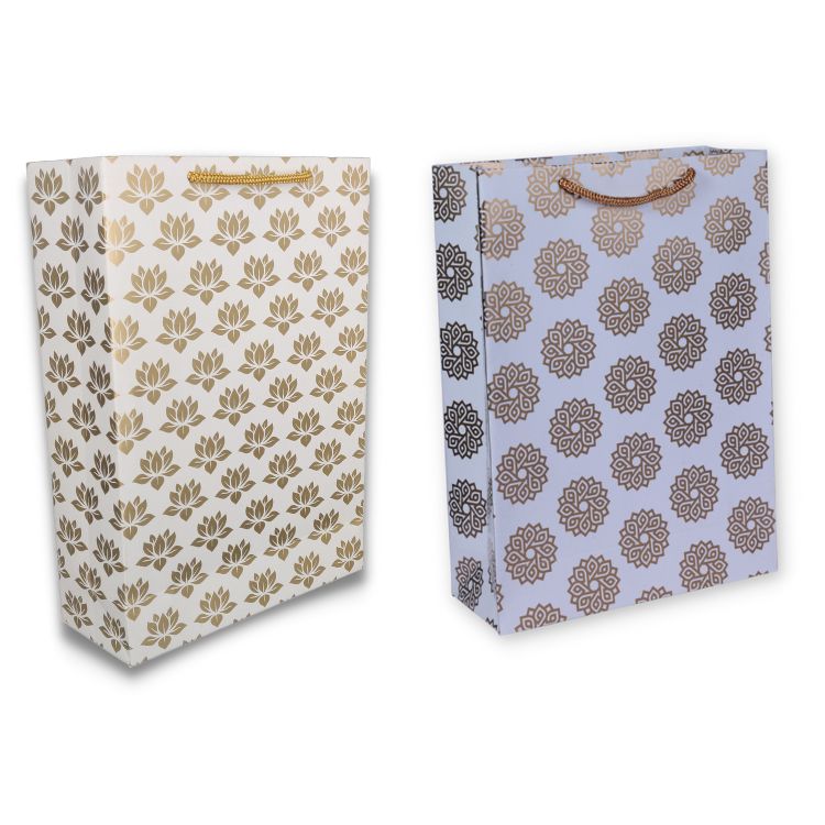 This premium luxury paper carry bag is specially designed for jewellery stores and high-end boutiques. Made from strong paper board with a smooth finish, the bag features elegant gold foiling that enhances brand visibility and gives a rich, premium look. The ribbon handle adds both style and comfort, making it perfect for carrying delicate and valuable items like diamond jewellery, silver ornaments, polki sets, and gift boxes. Ideal for jewellery showrooms, wedding collections, festive gifting, and premium retail packaging, this bag reflects sophistication and enhances the overall customer experience.