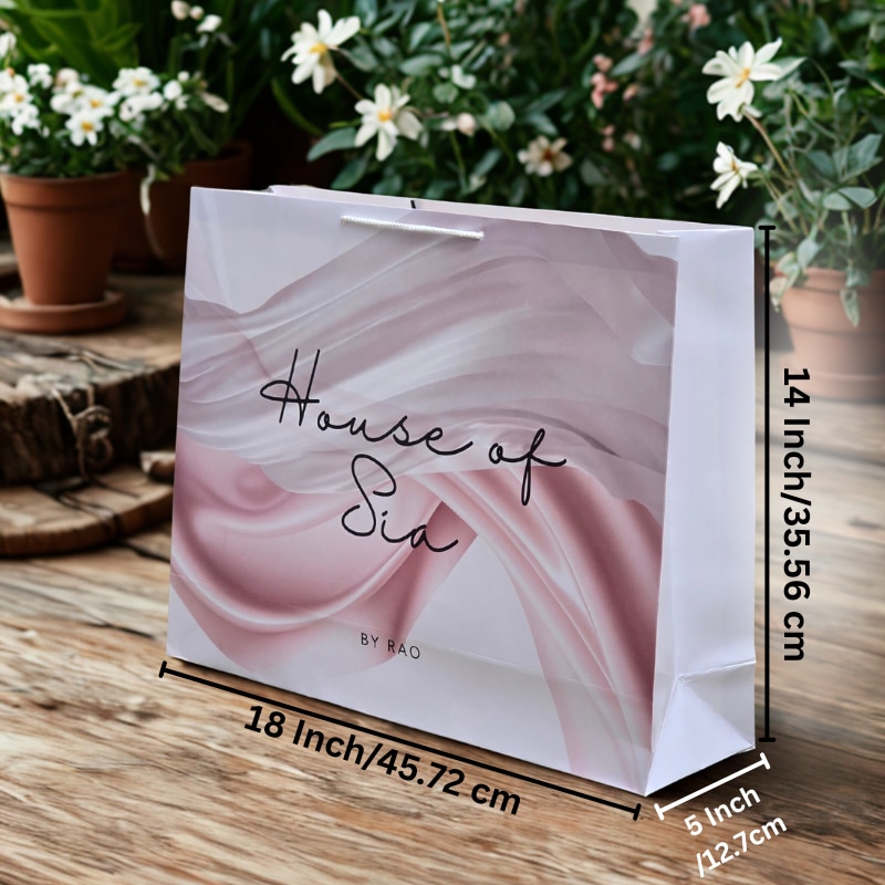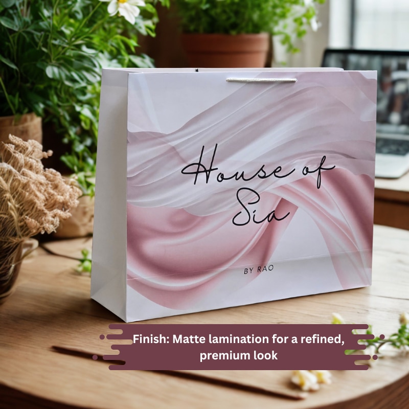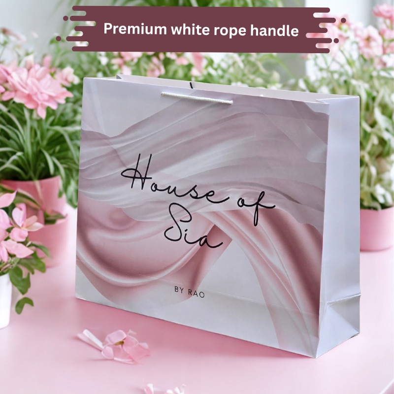 At Arrow Paper Products, we specialize in custom boutique paper bags that bring your brand’s elegance to life. This premium House of Sia bag is crafted from high-quality 300 GSM Duplex board with a smooth matte finish and soft rope handles for a luxurious touch. Perfect for fashion boutiques, designer wear stores, and premium gifting brands who want to leave a lasting impression. Customization Options: Brand logo printing Matte/Glossy lamination Ribbon or rope handles Multiple size options