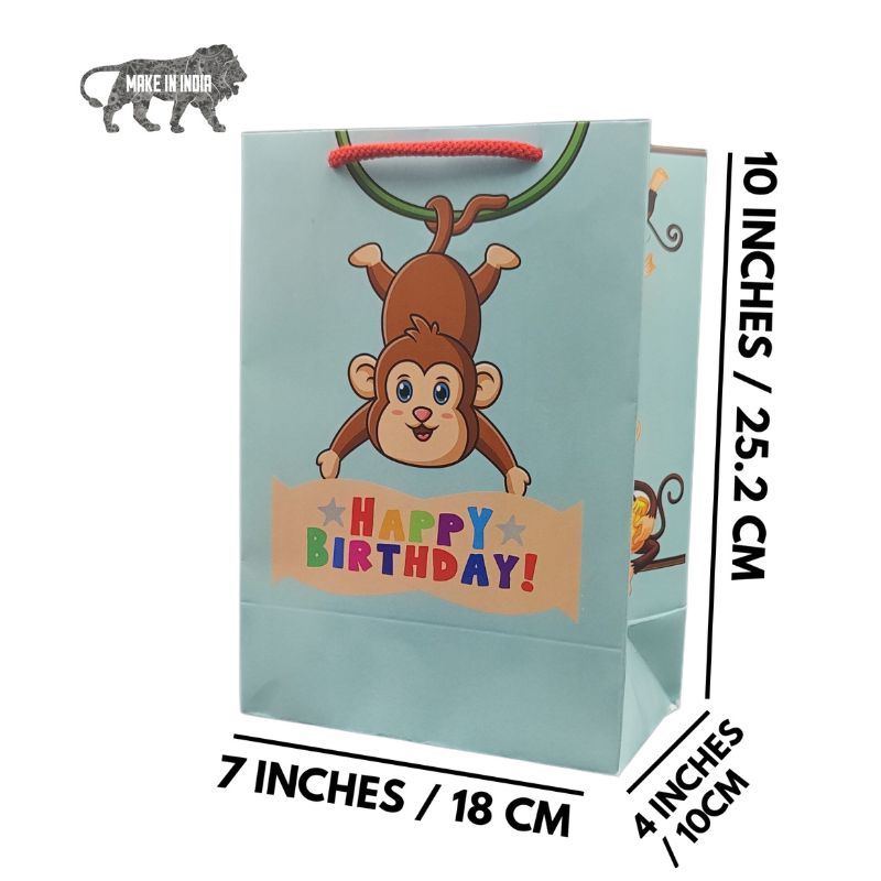 10x7x4 inches Monkey Theme Paper Bag with high quality board and multicolour printed