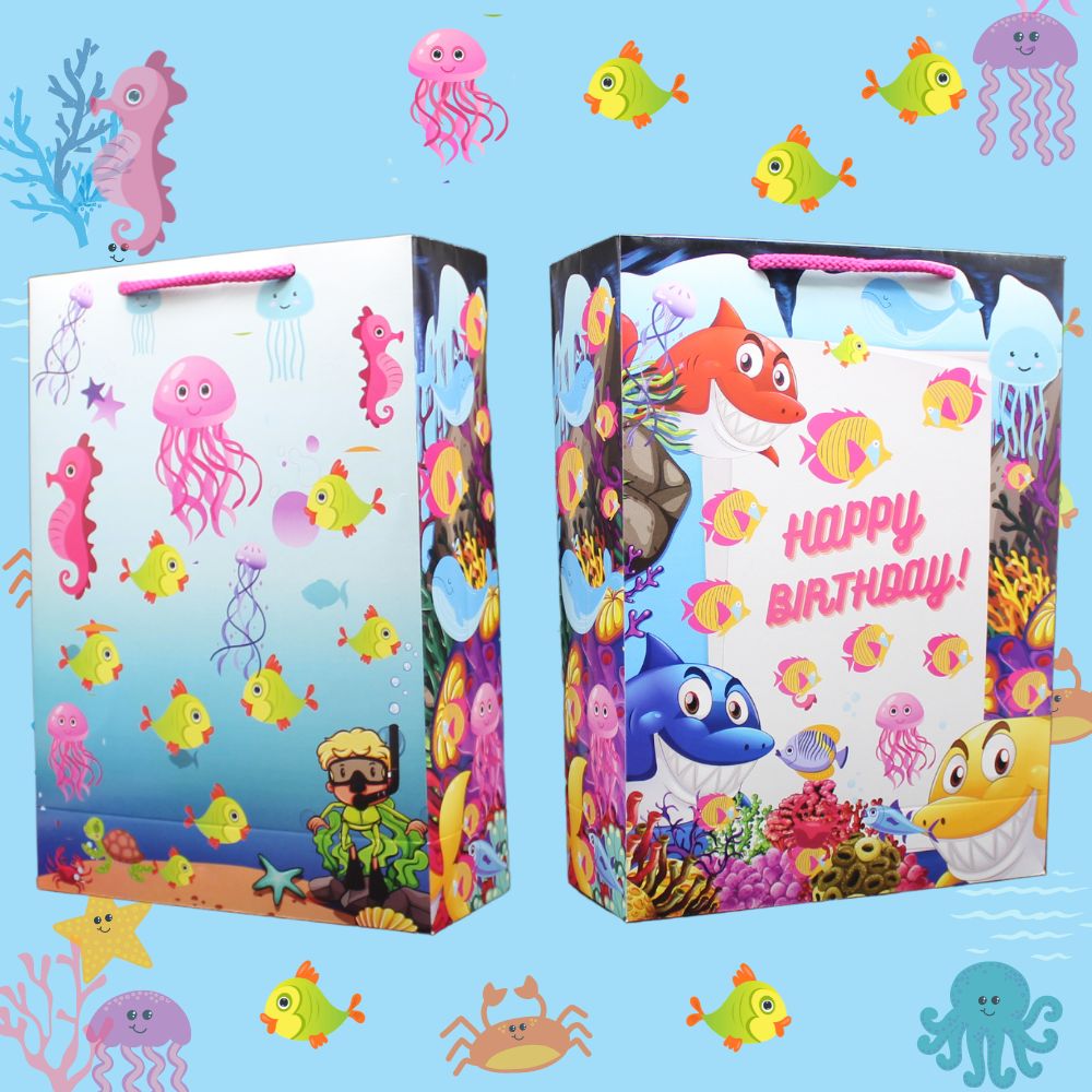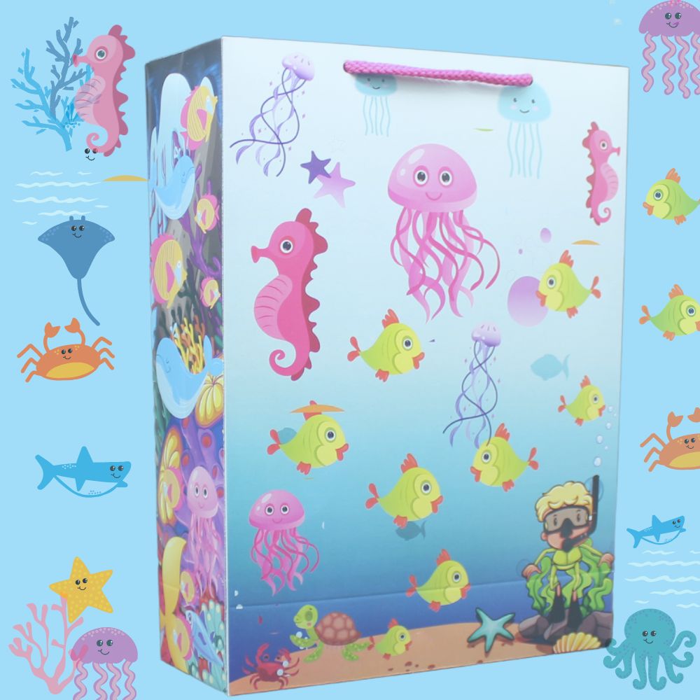Size 11x8x3 inches Sea Theme Paper Bags with high quality Board and Bright colours