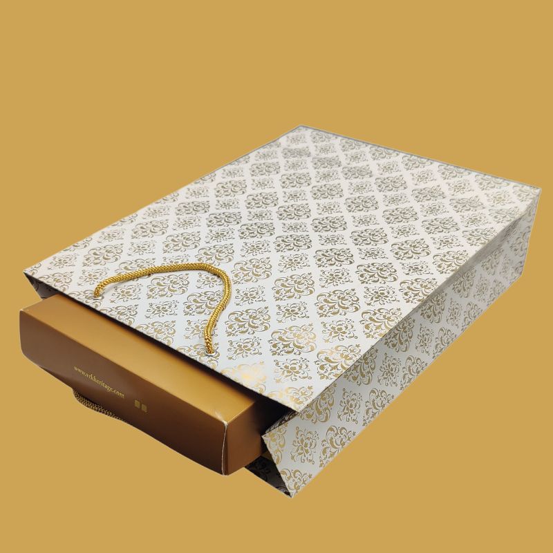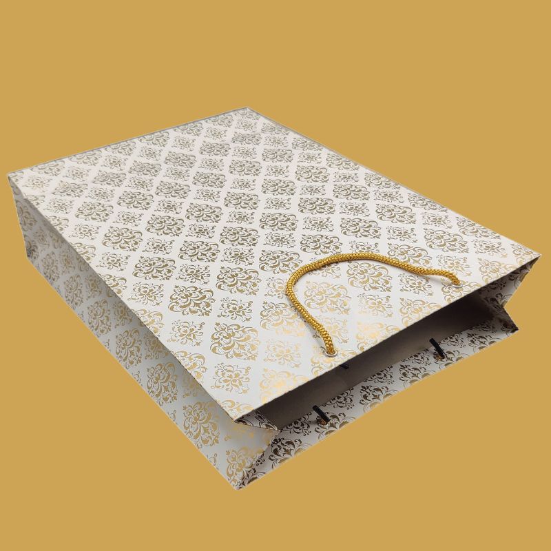 Party Return Gift Bags for Saree Boxes - Elegant and Spacious Make your event memorable with our premium party return gift bags, meticulously crafted to perfectly accommodate saree boxes. Our large-sized gift bags are designed to add a touch of elegance and sophistication to your special occasions, ensuring your guests leave with a delightful memento. Features: Perfect Fit: These bags are specially designed to fit saree boxes, providing a snug and secure hold, preventing any damage or misalignment. High-Quality Materials: Made from durable, high-quality materials, our gift bags ensure sturdiness and longevity, ideal for holding heavy and delicate items like sarees. Elegant Design:Featuring a blend of traditional and contemporary designs, our bags are perfect for weddings, parties, and festive celebrations. Choose from a variety of colors and patterns that complement your event theme. Convenient Handles: Sturdy and comfortable handles make it easy to carry, ensuring your guests can take their gifts home with ease. Customizable Options:Personalize your gift bags with names, dates, and special messages to add a personal touch. We also offer custom printing to include your event logo or branding. Why Choose Our Party Return Gift Bags? Spacious and Secure: Generously sized to fit saree boxes, ensuring a neat and organized presentation. Versatile Use:Ideal for various events such as weddings, birthdays, anniversaries, and corporate gatherings. Eco-Friendly: Made from recyclable materials, our gift bags are an environmentally responsible choice. Affordable Luxury: Offering a premium look and feel at competitive prices, providing great value for your money. Add a touch of grace and style to your events with our specially designed party return gift bags for saree boxes. Make every occasion unforgettable with a thoughtful and elegant parting gift. If you need any specific details or additional information included, feel free to let me know!